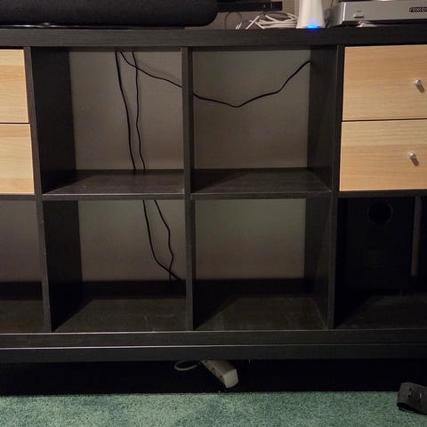 Säljer min Kallax-hylla med fyra lådor. Säljes pga flytt, ca 2 år gammal och är i mycket fint skick.