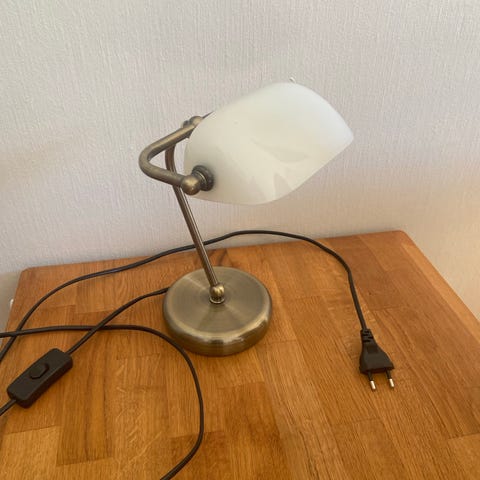 Tung stabil mässingslampa med vit glas skärm. Modern kontakt och fungerar.