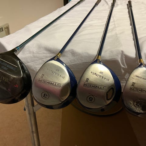 Säljer ett välskött och komplett vintage golfset från Spalding i serien “1876 Premium Series” – klassiska amerikanska klubbor från 2003 med bra prestanda och snygg look. Setet är i riktigt bra skick för sin ålder: minimalt slitage, inga sprickor i huvuden, raka skaft, greppen är hela och mjuka (inga hårda eller spruckna), och i sin helhet ser det ut som det knappt använts.