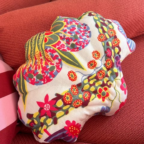 Sypall i större modell. Tyg blå elefant från Svenskt Tenn. Fint skick. Finns även en knapp som ska sitta på med samma tyg som lossnat men går att sy dit om man önskar.