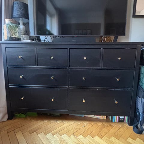 En lite sällsynt färg, jättfin blå. Förutom enstaka skavanker är byrån i väldigt fint skick. Skruvarna behöver dras åt lite då den har stått i några år. Kan inte montera isär den inför avhämtning. Kommer att torka av hela byrån innan upphämtning.