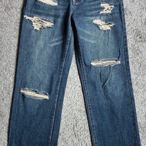 H&M Wide Leg jeans för herr. Modell med vid passform och hög midja. Justerbar midja enligt etikett. Storlek M med midjemått W29. Tillverkade i blå denim. Passar som vardagsbyxa eller avslappnade outfits.