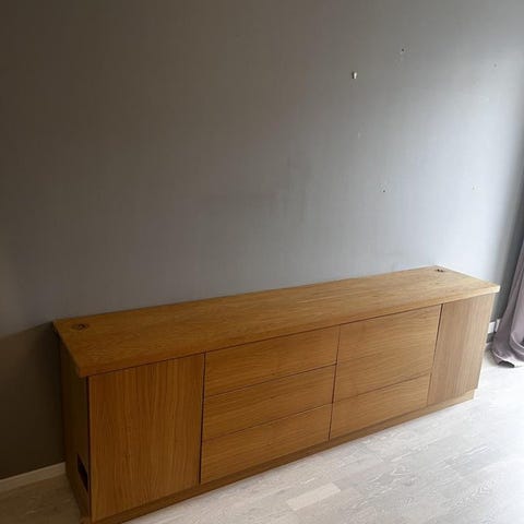 Säljer en snygg och praktisk skänk från Mio i valnötsfinish. Perfekt som förvaring i vardagsrum, hall eller matsal.