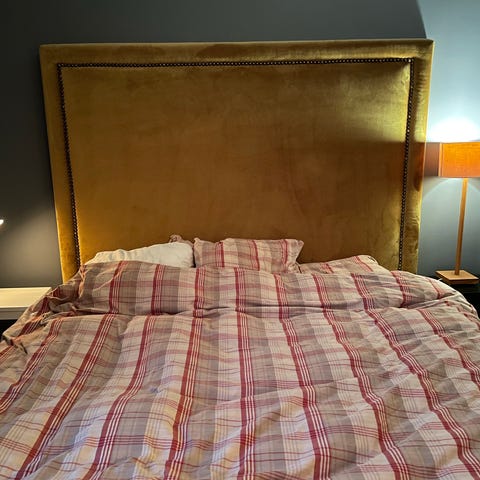 Kuddarna är justerbara i höjd. Det finns hund i hemmet.