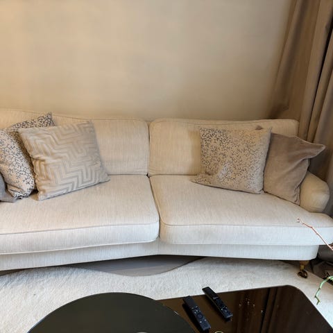 Ellinor 3-sitssoffa. Inköpt för 2 år sen, har lite slitage men är i allmänt i gott skick. Vi har tagit bort kuddarna, tyckte den var snyggare så. Men de finns och följer med vid eventuellt köp, såklart.