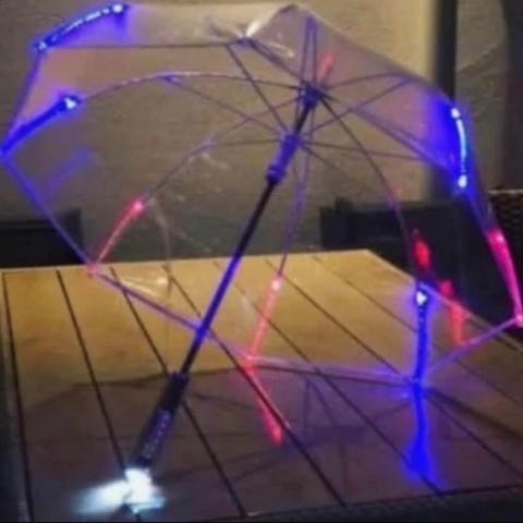Paraply i hjärtform. Paraplyet är vitt och har texten "just married" tryckt på ena sidan. Passar vid bröllop.