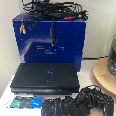 Säljer mitt Playstation 2! Felfritt och fungerar utmärkt! Det ingår 4 handkontroller (Varav 2 är helt nya och aldrig använda.) Ett minneskort på 8Mb och playstation kablar.