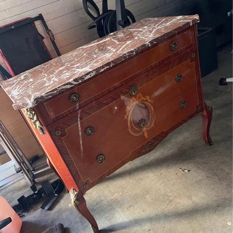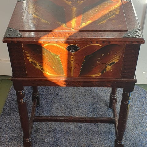 Gammalt träskåp/kista/syskrin med låda kurbits