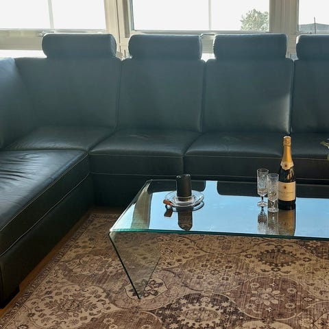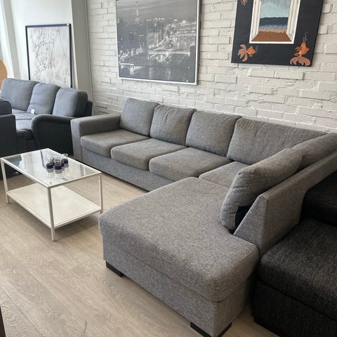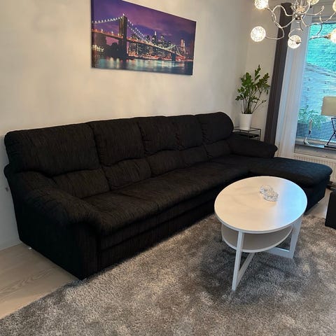 Hörnsoffa + puff til 1200!