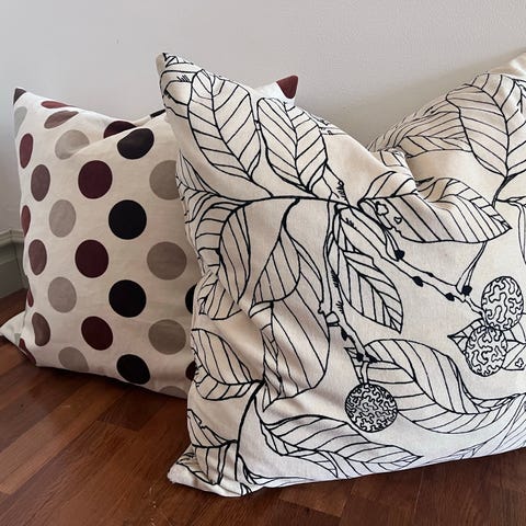 Prydnadskuddar i olika nyanser av orange och gult. Flera kuddfodral med sammetsliknande och slät yta, varav ett med mönster i vitt och orange. Fyrkantig form, lämpliga som soffkuddar eller dekorationskuddar i vardagsrum eller sovrum. Säljs tillsammans enligt bilder.