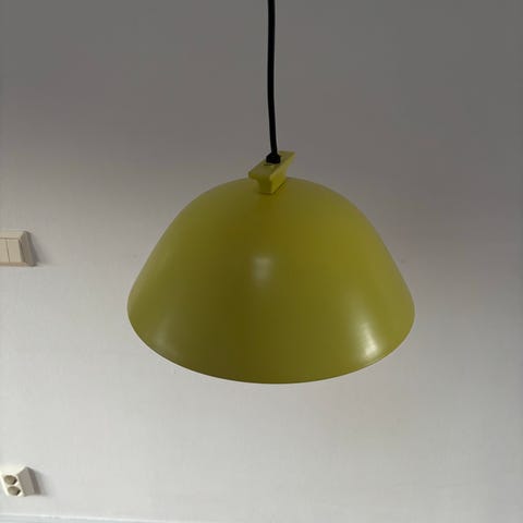Lamporna är i olivgrön plexiglas och transparent el kabel och tak kopp som döljer takfästet