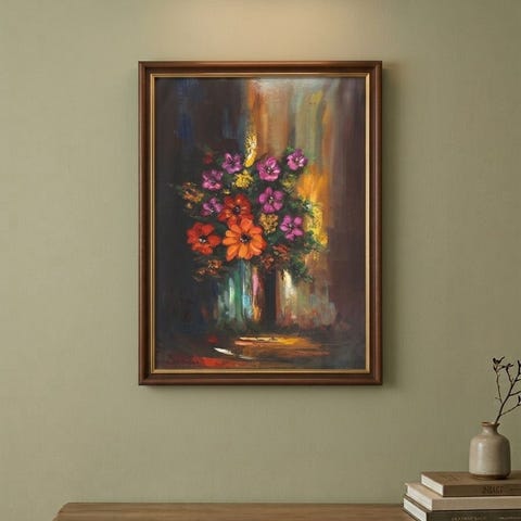 Blommor i gyllene vas | Oljemålning 50*70 på kanvas| inredning , tavla , prydnad