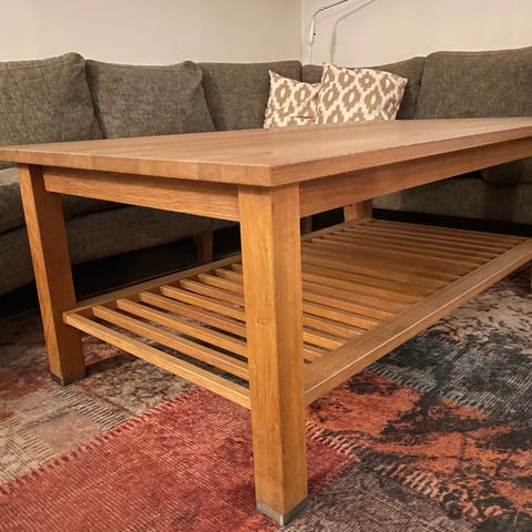 Fint soffbord med tjock glasskiva och underrede. Det är inte nytt så några små märken finns.