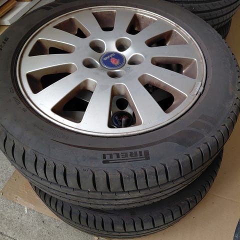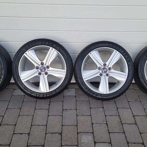 4 st Saab aluminiumfälgar 17 tum med sommardäck säljes