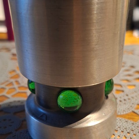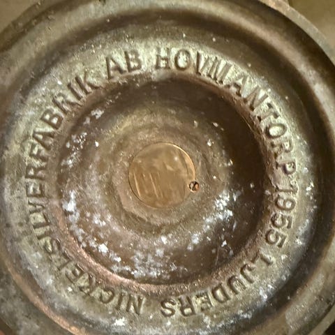 Söt liten dekorativ vas i tenn (tin) med två framtassar som ser ut som lejontassar. Vasen har charmiga stämplar/märken på varje tass. Perfekt som prydnad i hemmet eller som samlarobjekt för den som gillar nordisk tennkonst.
