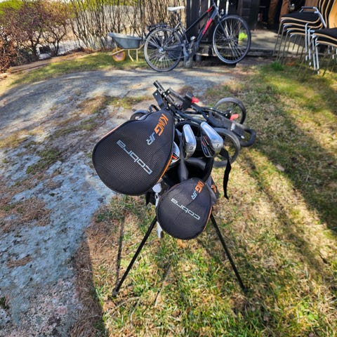 Cobra golfset 10-12 år. 7 klubbor (driver, spoon, hybrid, j7, j9, sw och putter), headcovers, bag + vagn.