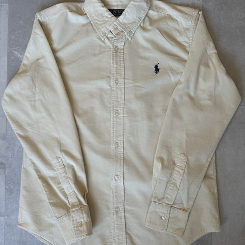 Ralph Lauren Polo långärmad tröja för herr i storlek M. Tröjan har klassisk krage med knäppning fram. Material i bomull. Bröstet pryds av Ralph Laurens broderade logotyp. Passar som vardagströja.