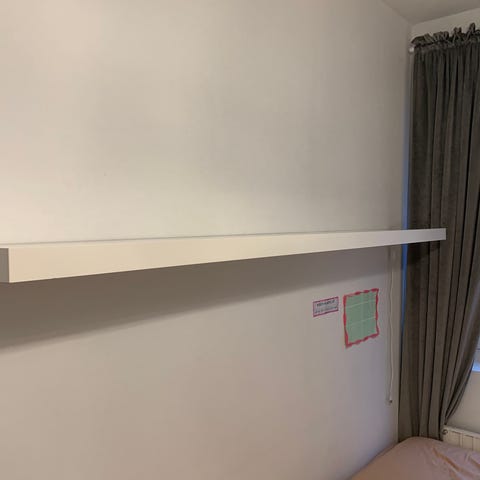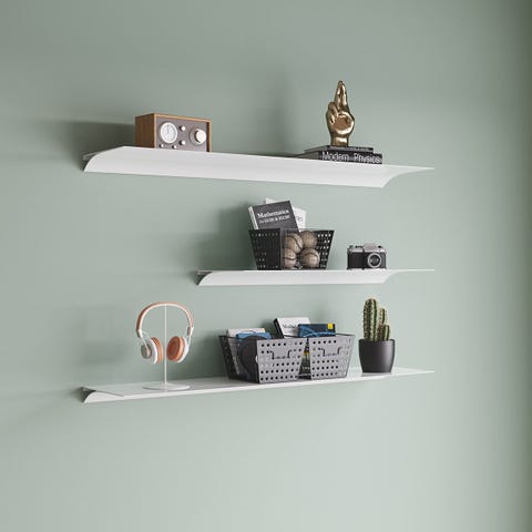 Flytande vägghylla, monteras med pluggar och skruvar (ingår ej).