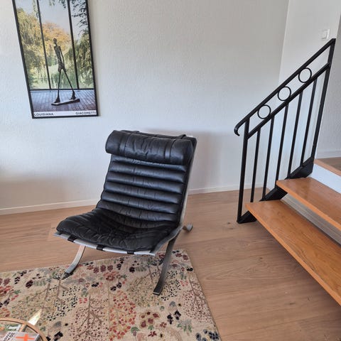 Säljer två snygga och bekväma loungefåtöljer i grått tyg med svart metallstativ. Perfekta som extra sittplatser i vardagsrum, läshörna eller som accentmöbler. Okänt märke, så vet ej vart de är köpta.