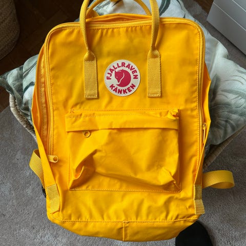 Fjällräven Kånken ryggsäck i tyg för unisex. Klassisk modell med stort huvudfack, frontficka med dragkedja och två öppna sidofickor. Bärhandtag upptill och justerbara axelremmar. Ryggsäcken har den runda Fjällräven Kånken-logotypen på framsidan. Färg: mörkblå.