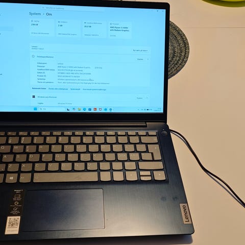Lenovo laptop i svart utförande. Bärbar dator med fullstor tangentbordslayout och pekplatta. Skärm med tunn ram. Funkar helt utan problem och den är lämplig för vardagligt arbete eller studier!