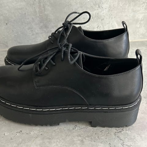Tamaris loafers i svart färg i storlek 38. Skorna har snörning framtill och kraftig sula med nitar runt om sulkanten. Ovandel i slätt material med rund tåform. Passar som vardags- eller arbetssko och kan kombineras med både byxor och kjol för en mer dressad stil.