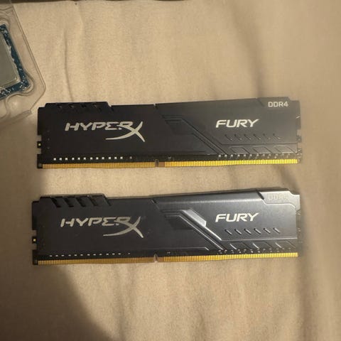 4x4 corsair 2666mhz ram som funkar fint tillsammans med en ryzen 5 1600 cpu som jag inkluderar i köpet om man vill ha den (även moderkortet om man vill men det funkade ej senast jag testade det, CPU och ram fungerar fint dock som sagt)