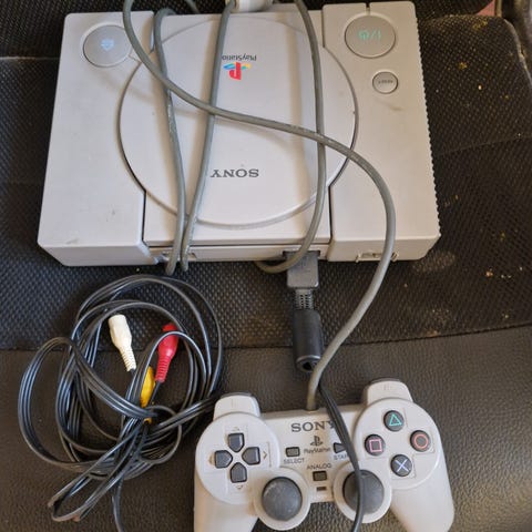 Sony DualShock handkontroll med sladd i grå färg.