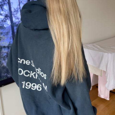 Blå/grön acne sweatshirt i storlek S. Najs passform.