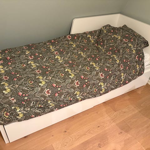 Säng 90x200cm med madrass. Madrassen är i väldigt bra skick.