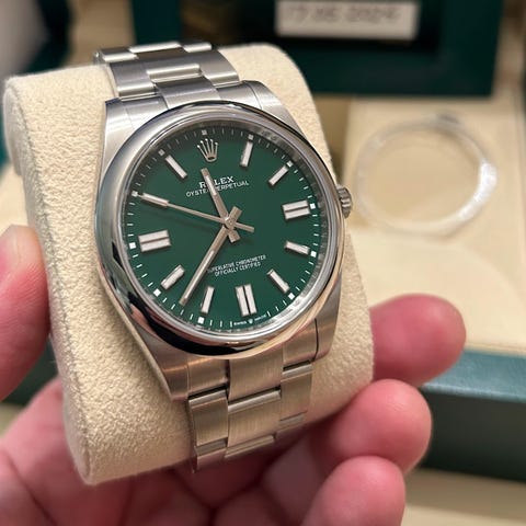 Klockan är uttagen från svensk Rolex-butik och levereras komplett med samtliga boxar, certifikat, manualer samt grön Rolex-tag.