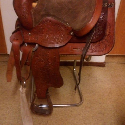 Säljer nu min riktigt snygga och bekväma showsadel av märket Cirkel Y. Den är I väldigt bra skick, mest använd på tävling. Den är 16 tum och med full quarterbom. Medföljer biltuppadd , matchande träns och brösta till samt saddelgjord . Kan skickas men då står köparen för frakten.