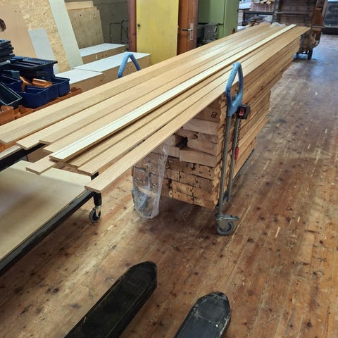 43 st hela längder 1285 x 195mm~10 kvm samt lite olika längder. Lagts löpande i ett rum på 17 kvm. Klickgolv. Ca 20 år gammalt men fint skick. Medföljer tillhörande underlagsfoam.