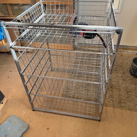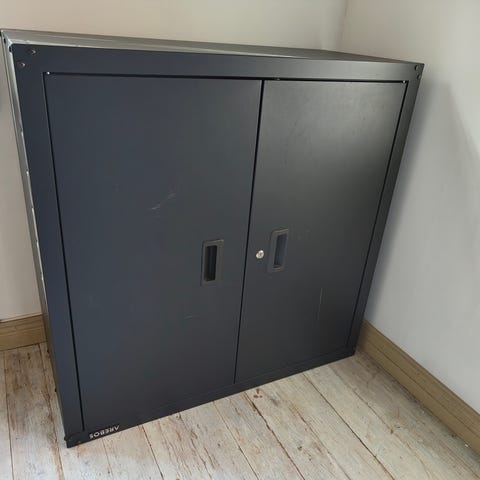 Skåpet har två hyllplan och är i fint skick men med något skav (se bild).