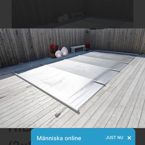 Poolskydd, Ribcover i mycket bra skick. Inköpt 2022 och Vi har använt vinterplåtar som skydd på vintern. Säljer nu för att vi bytte till glastak i somras.