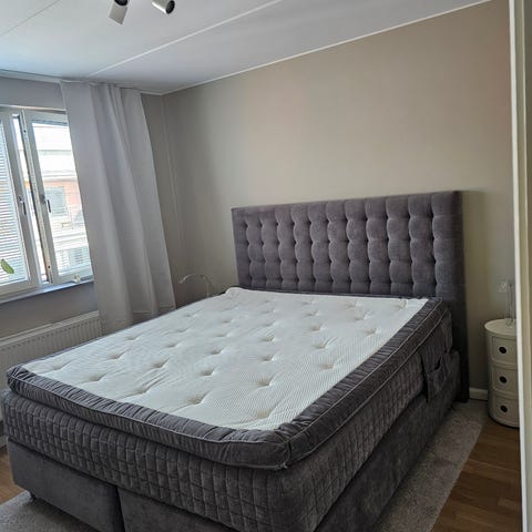 Sänggavlen ingår ej. Hjälp kan fås att bära ner till gatan!