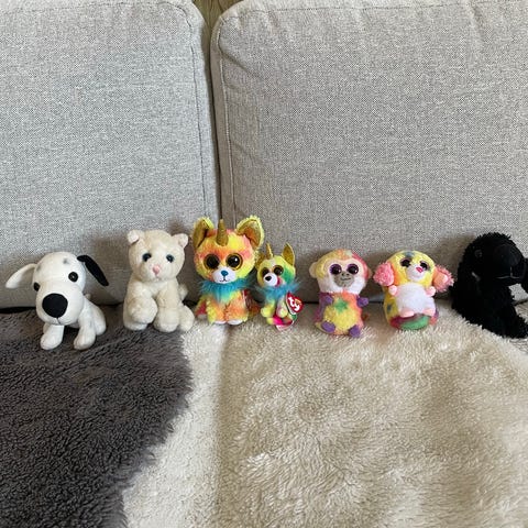 Ty gosedjur små figurer i mjuk plysch. Set med tre olika djurfigurer i flerfärgade nyanser. Passar som leksak eller samlarfigurer för barn. Tillverkade i textilmaterial med mjuk stoppning och broderade/fastsydda detaljer.