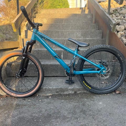 Specialized Hardrock mountainbike i storlek 26 tum. Cykeln har turkos ram, framgaffel med dämpning och skivbroms fram. Utrustad med grovmönstrade däck anpassade för terrängkörning. Lämplig som mountainbike för vardagscykling och enklare stigcykling.