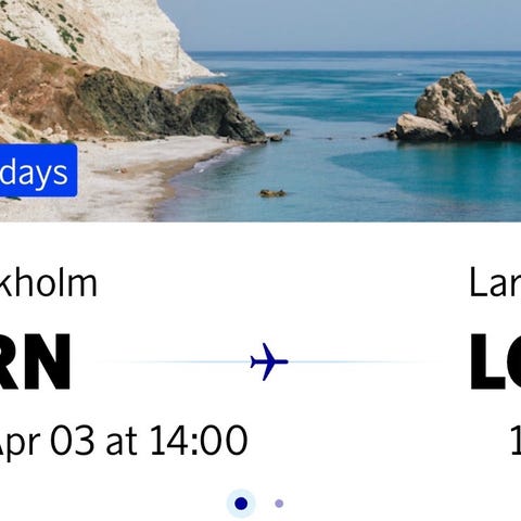 2 flygbiljetter inkl bagage stockholm Arlanda-larnaca på cypern 11-21/4 tor