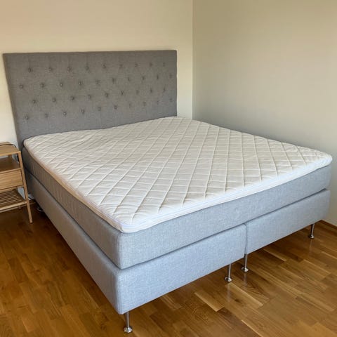 Köpt från mio för 4 år sen. Medium/fast. Vändbar kassett. Säljes komplett med bäddmadrass och gavel. Finns i Huddinge, Kvarnbergsplan. Vid snabb affär är jag villig att sänka priset.