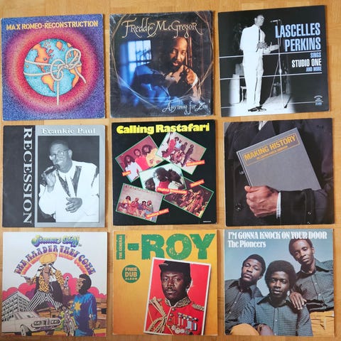 Samling med blandade artister vinylsinglar i 7-tumsformat. Skivorna är svarta och flera har originalomslag. Exempel på artister och titlar som syns på bilderna är Blood, Sweat & Tears, Overlord, Manfred Mann, The Rolling Stones med singeln "You Can’t Always Get What You Want" på Decca samt Elvis Presley med Good Luck Charm/Anything that's part of You och I gotta know/Are you lonesome tonight.