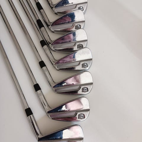 Järn-7 är väldigt använd. PW har slagit i sten och slipats. Resten av klubborna är i fint skick.