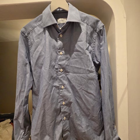 Modellen har lång ärm, klassisk krage och knäppning med knappar framtill. Passar exempelvis till vardag eller mer formella tillfällen tillsammans med byxor eller kostym.
