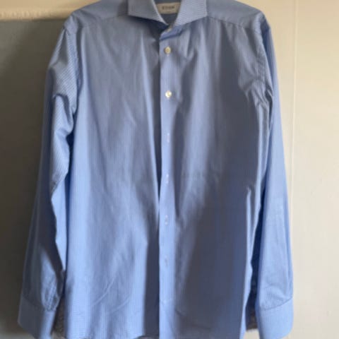 Dolce & Gabbana skjorta för herr i storlek L. Skjortan är blå och tillverkad i bomull och polyester.