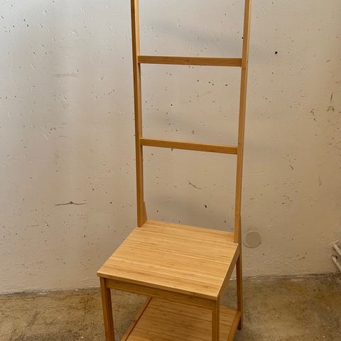 blomsterstege med krukor. Stegen är tillverkad i bambu och har flera vita krukor i metall som hängs på stegpinnarna. Passar för odling och förvaring av mindre växter inomhus, till exempel i kök, vardagsrum eller hall. Kan lutas mot vägg och flyttas vid behov.