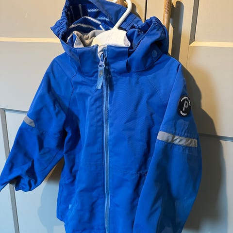 Polarn och Pyret skaljacka stl 110 i gott skick. Dragkedja med magnet nertill som gör att barnet lättare kan stänga själv.