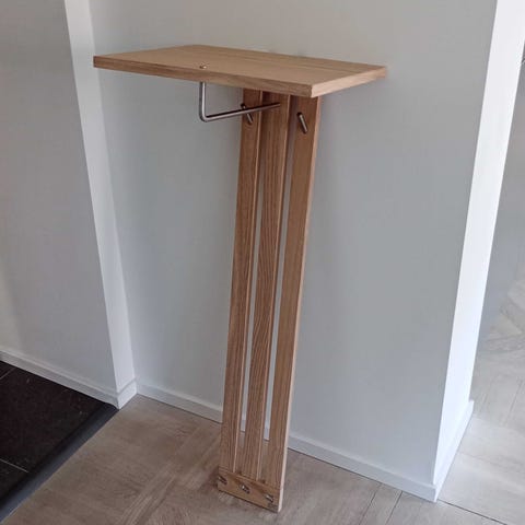 Hatthylla massiv ek med fästen i borstat stål