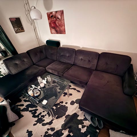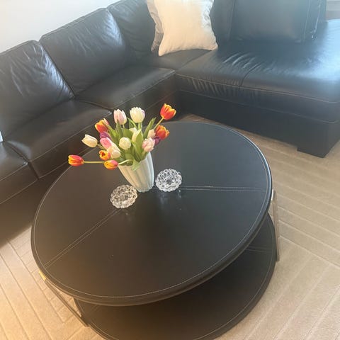 Säljer vår fina 3-sits soffa med tillhörande fotpall i äkta skinn för endast 2.500kr.