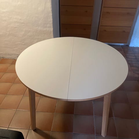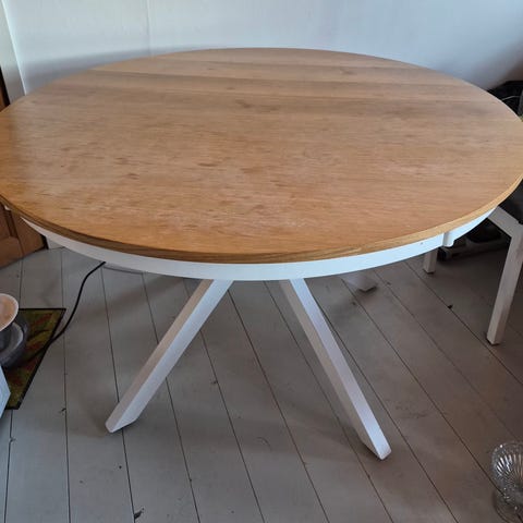 Matbord med furuskiva och vita ben i fint skick!