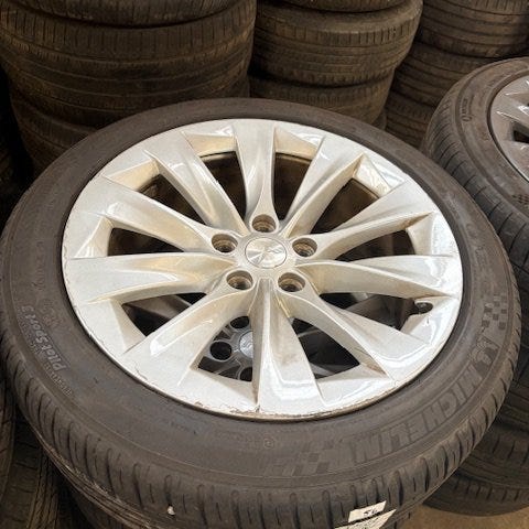 Goodyear däck med fälgar i dimensionen 255/50R19. Sommardäck monterade på lättmetallfälgar med fler-ekrad orginaldesign Tesla. Använda en sommarsäsong inköpta aug 2023 bilen såldes sedan 2024 utan dessa däck. Nypris däck 12000:-kvitto finns, + fälgar beg. 6000:- ( mot 18000:-).